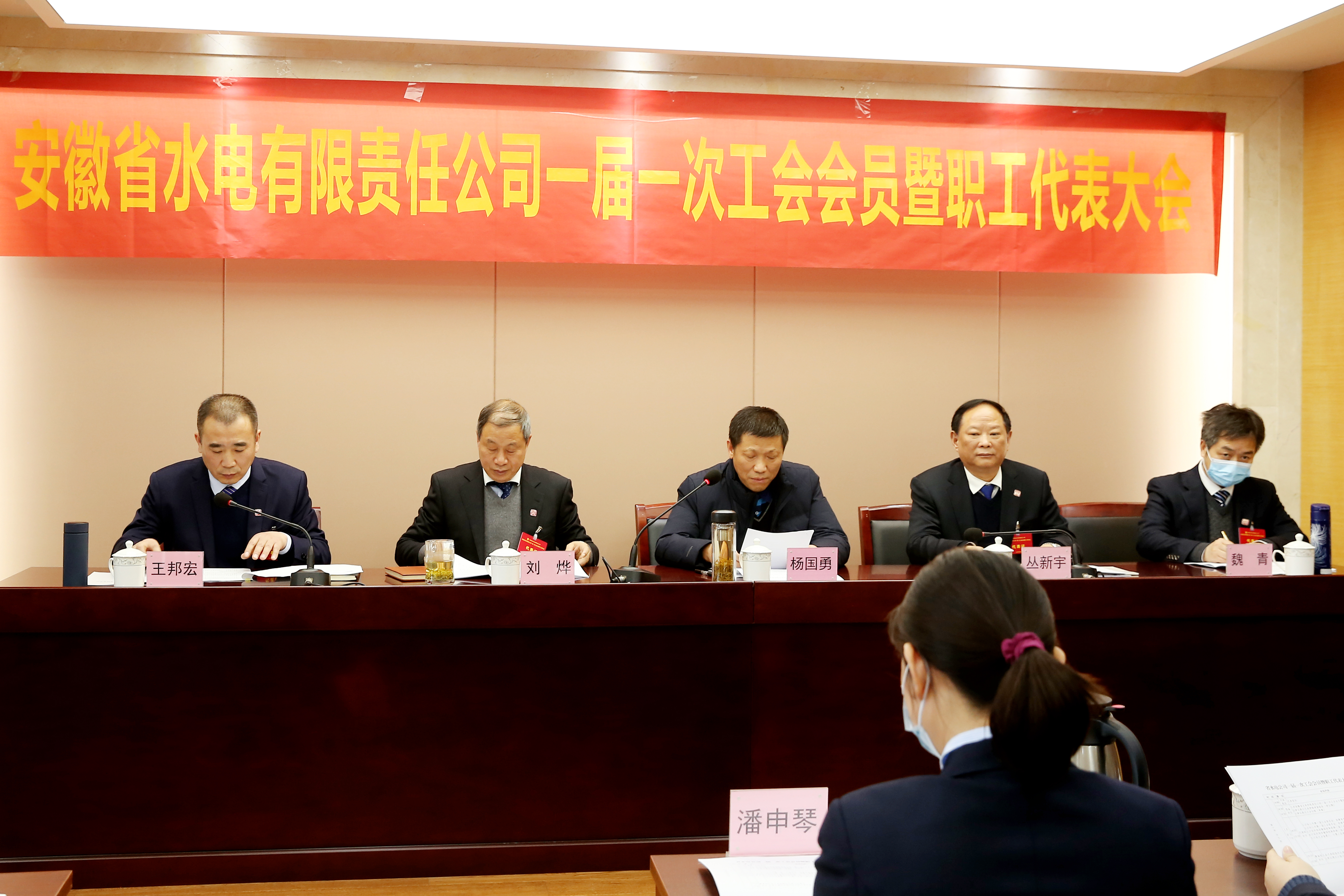 2021年1月27日,水电公司召开安徽省水电有限责任一届一次工会会员暨职工代表大会,公司工会会员代表(职工代表)参加会议,安徽国控集团党委委员、工会副主席、机关工会主席杨国勇和有关部门负责人到会指导。