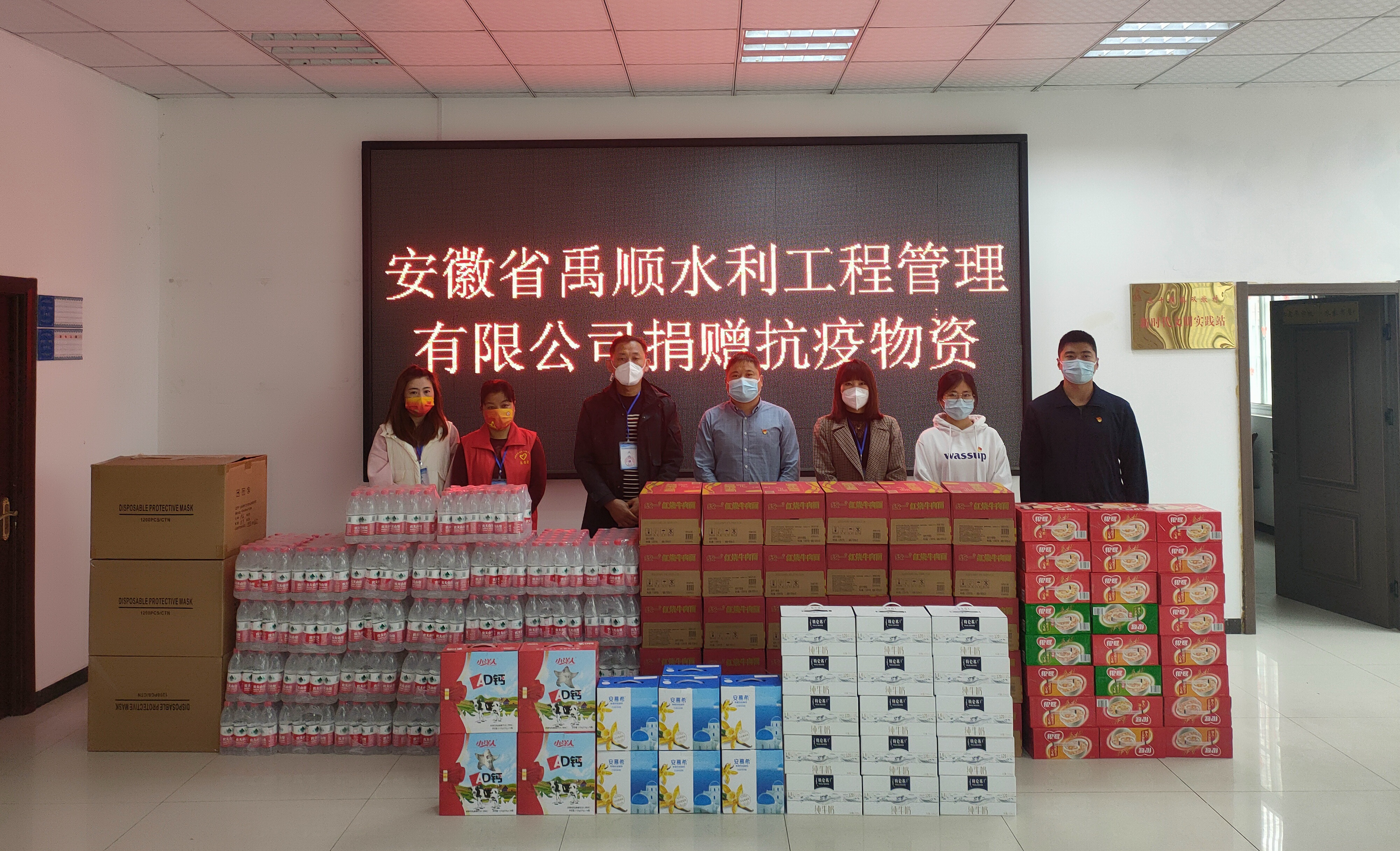 疫情无情人有情。当前,六安市正处于疫情防控的关键时期。4月13日,禹顺公司副总经理陶辉一行来到六安市东部新城水利综合治理项目所在地三十铺镇双墩村委会,向村委会抗疫情一线的工作人员捐赠了口罩、矿泉水、方便面、牛奶、八宝粥等抗疫物资,为奋战在抗疫一线的医护人员、社区工作者和志愿者们提供有力的生活保障。