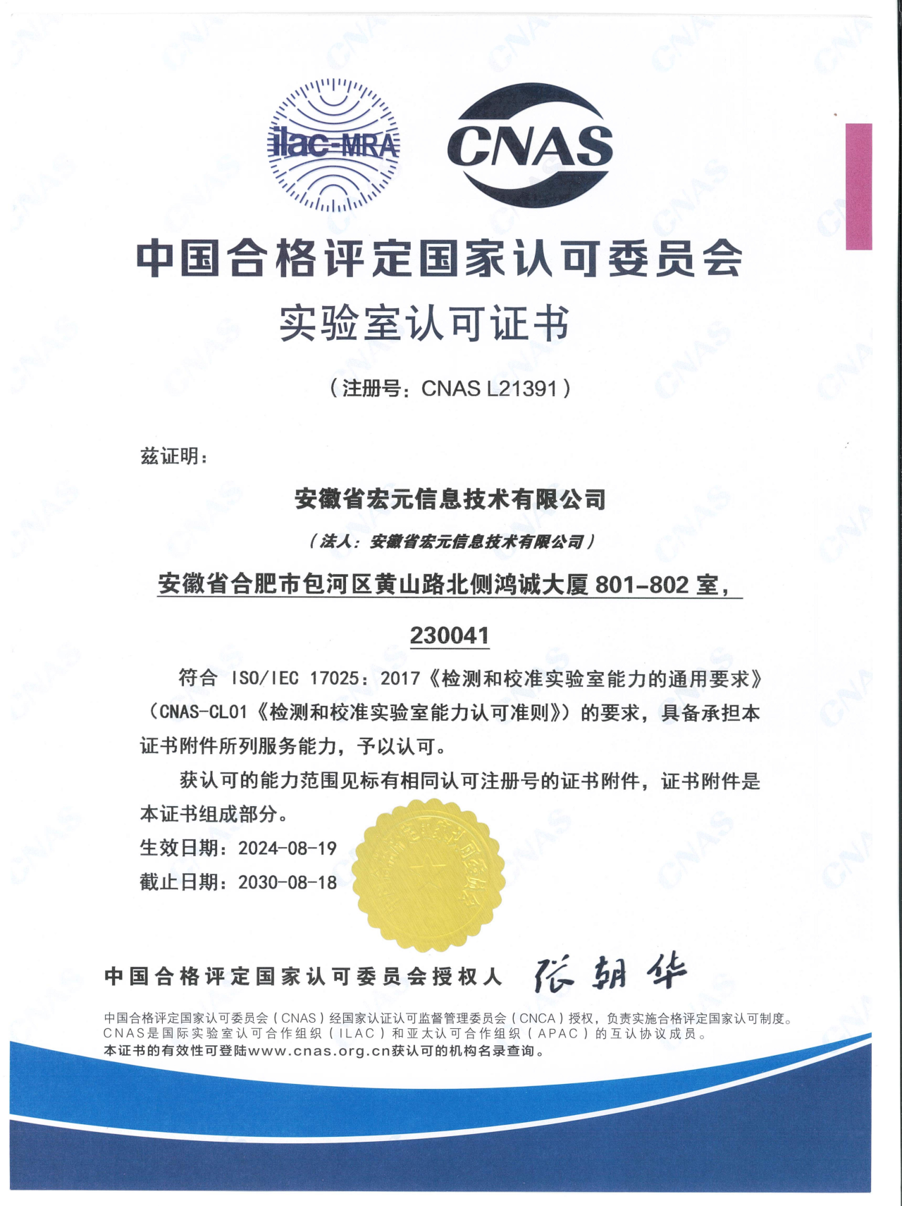近日,ok138cn太阳集团古天乐所属宏元公司成功荣获中国合格评定国家认可委员会(CNAS)颁发的实验室认可证书。此次资质的取得不仅是对宏元公司在软件产品检测领域的高度认可,也标志着宏元公司的质量管理体系与标准化工作迈上了更高的台阶。