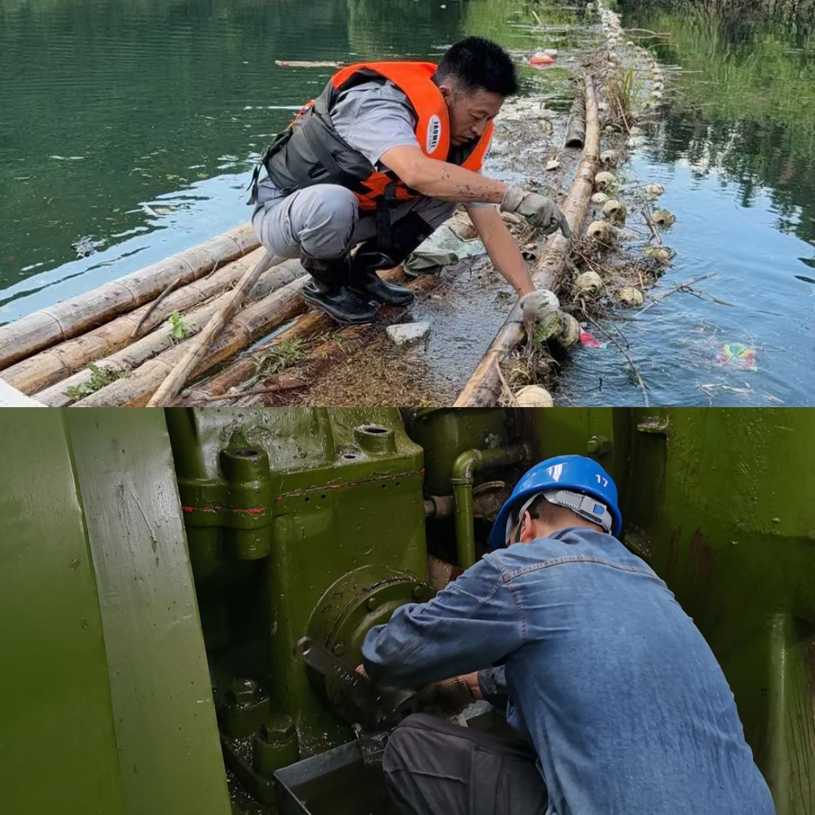进入7月,气象部门预报我省短期内无明显降雨过程,ok138cn太阳集团古天乐迅速响应,组织各水电站全面开展机组检修与大坝清洁工作。检修现场,技术人员各司其职,对机组密封件等易损部件进行细致检查和更换,对控制系统进行校准调试,全力消除设备在持续高负荷运转中积累的潜在故障风险。同时,工作人员以人工、机械相结合的方式,对库区及大坝周边漂浮物进行集中打捞和清理,有效降低了杂物对大坝设施及机组运行的影响。