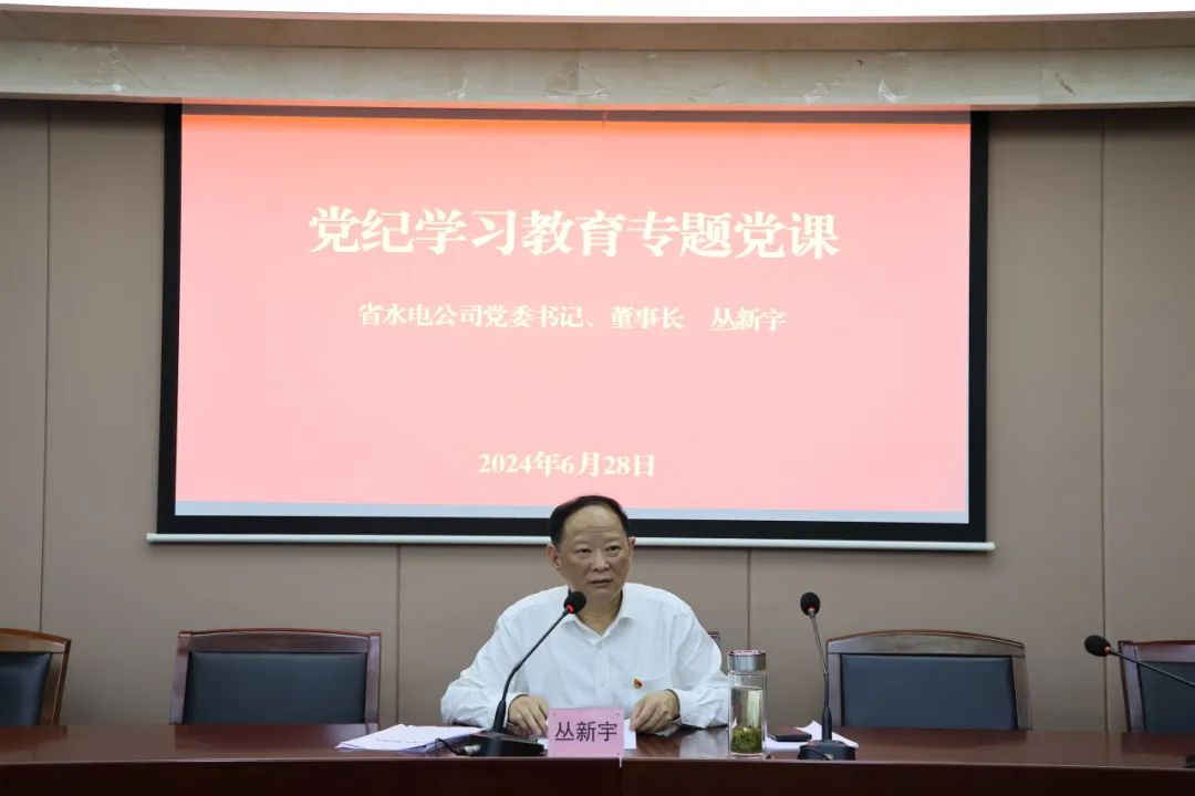 6月28日下午,公司党委召开党纪学习教育专题党课报告会。公司党委书记、董事长丛新宇作专题党课报告。会议由公司党委委员、副总经理、职工董事刘烨主持。公司领导班子成员参加会议。