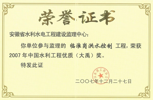 临淮岗洪水控制工程(大禹)奖