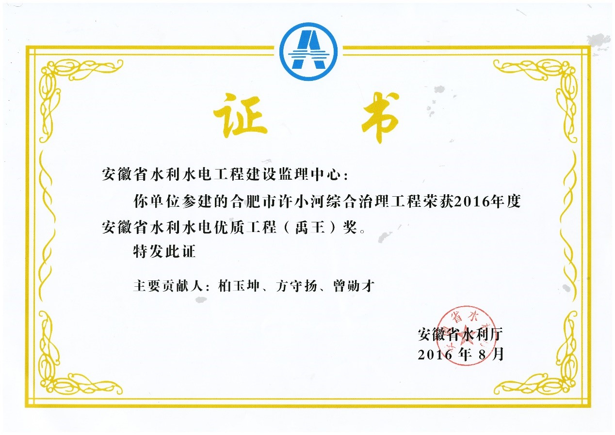 合肥市许小河综合治理工程(禹王))奖