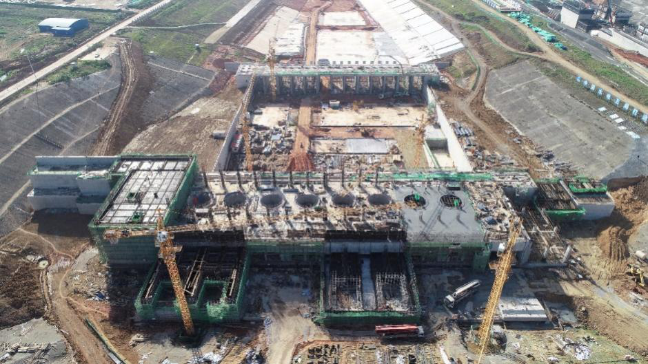 2021年4月29日10时28分,伴随着1、2#机组电机层最后一方混凝土浇筑完成,标志着蜀山泵站枢纽机组段电机层全部封顶。